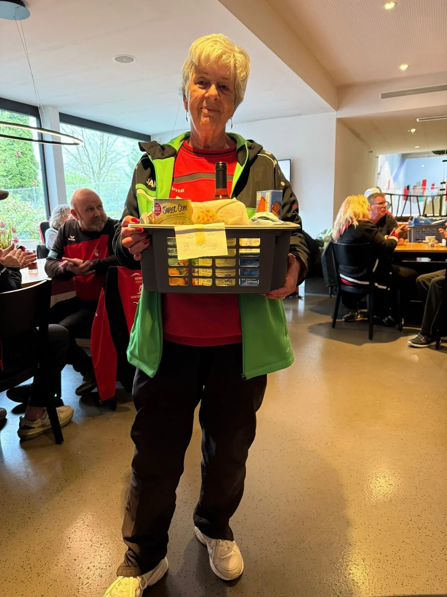 Annemarie Probst mit ihrem Präsentkorb für den zweiten Rang